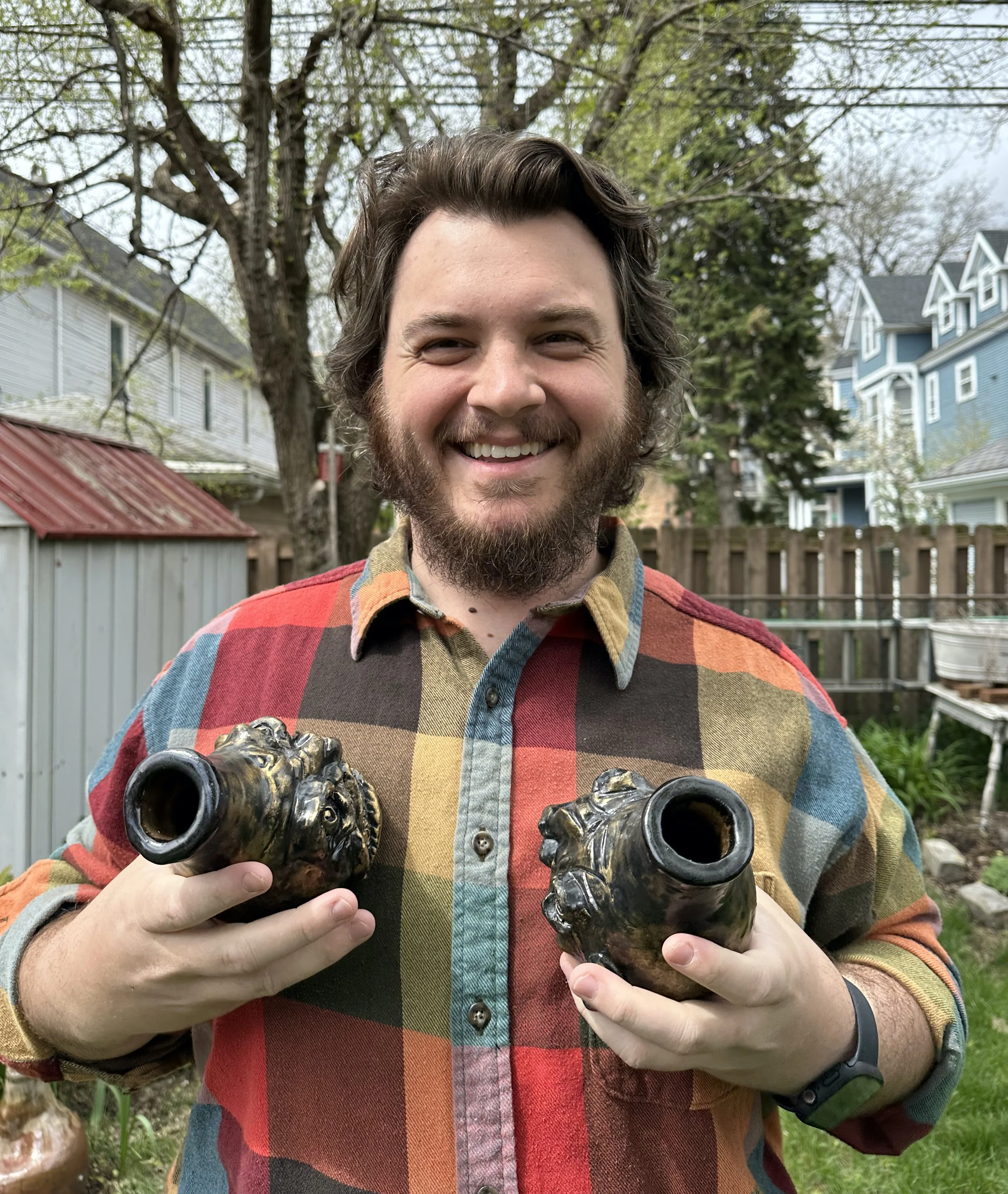 Garrett Leo Augustyn is a Chicago-based ceramic artist whose work delves into the realm of the bizarre and extraordinary. With a desire for crafting grotesque yet captivating forms, Augustyn's ceramic sculptures redefine conventional notions of beauty, particularly evident in his frequent exploration of cowboy clowns—an iconic motif that embodies the peculiar allure within his ceramic creations. Through his unapologetic exploration of human figures, Augustyn invites viewers to appreciate the harmonious coexistence of the strange and absurd in his uniquely evocative sculptures. His creations, rooted in wit and satire, serve as a poignant commentary on contemporary culture, politics, and the human condition.